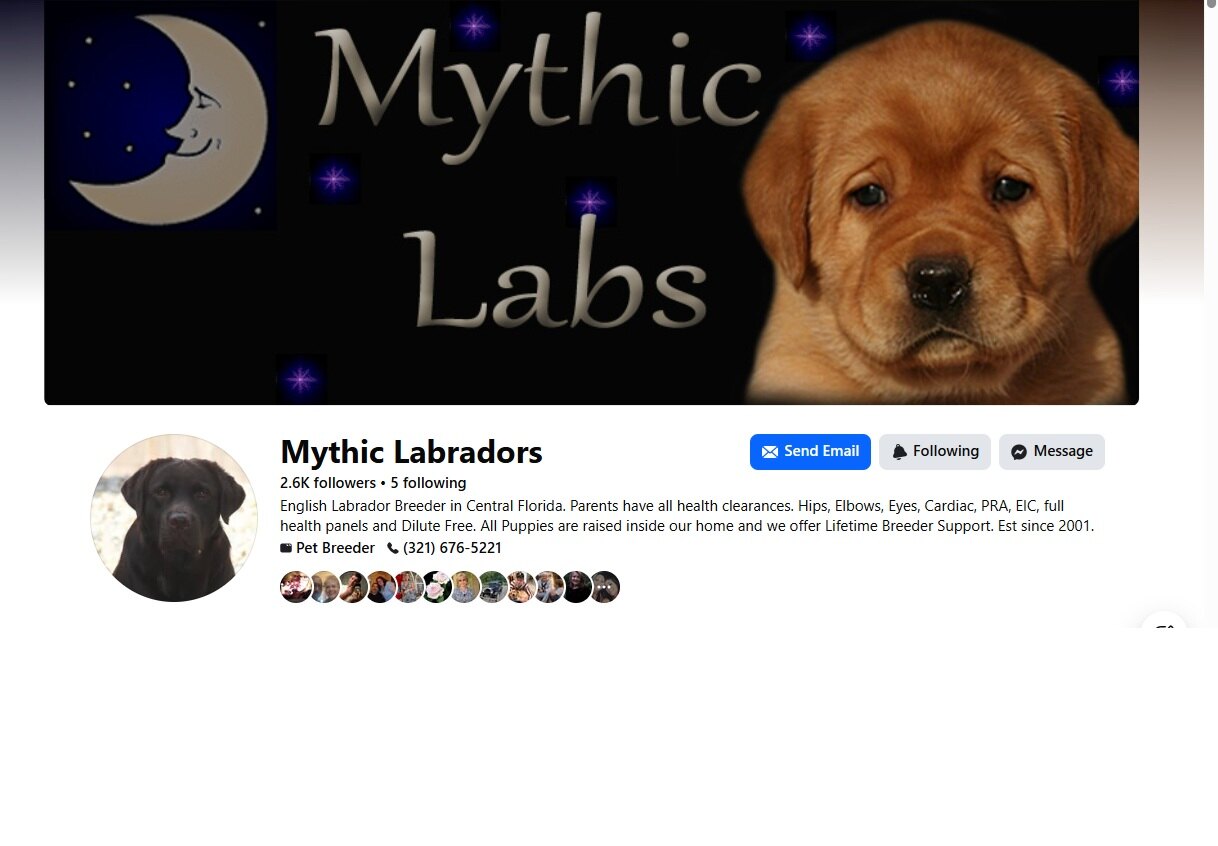 Below is the CORRECT and AUTHENTIC Mythic Labradors Facebook Page!